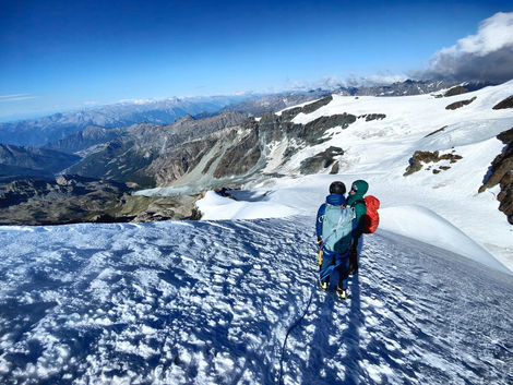 Im Zentrum dieser Tour stehen nicht möglichst viele Gipfel, wie bei der klassischen Spaghetti-Tour, sondern das bewusste Unterwegssein. Wir lassen Zeit fürs Ankommen in der Höhe, achten auf den eigenen Rhythmus, nehmen Weite und Stille der hochalpinen Gletscherwelt wahr und sind rücksichtsvoll als Gruppe unterwegs. Die Tour gleicht einem Gletscher-Trekking in großer Höhe, bei dem sich Viertausender wie Vincentpyramide oder Ludwigshöhe aus dem Weg heraus ergeben können. Gerade ohne viel Höhenerfahrung ist es dabei wichtig, Körpersignale ernst zu nehmen und diese nicht zugunsten eines Gipfels zu übergehen.